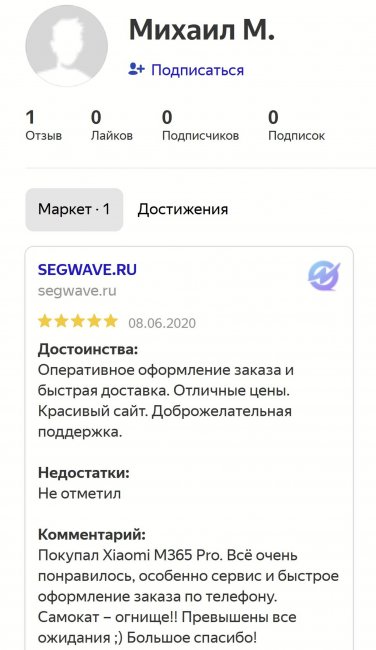 В 2020 году он снова был в России, купил электросамокат и не поленился написать отзыв: