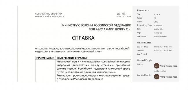 Таким образом, проект представляется его основателям уже не просто спортивным мероприятием, а гигантской логистической инфраструктурой. Но и на этих наполеоновских планах организаторы не остановились: в их головах уже созрел проект поистине континентального масштаба, как видно из третьего документа. Этот документ имеет гриф «Совершенно секретно/Не копировать» и представляет собой доклад Булата Янборисова министру обороны России Шойгу от 12 ноября 2021 года. В нем, помимо различных инфраструктурных и энергетических планов, рассматривались цели военного характера: