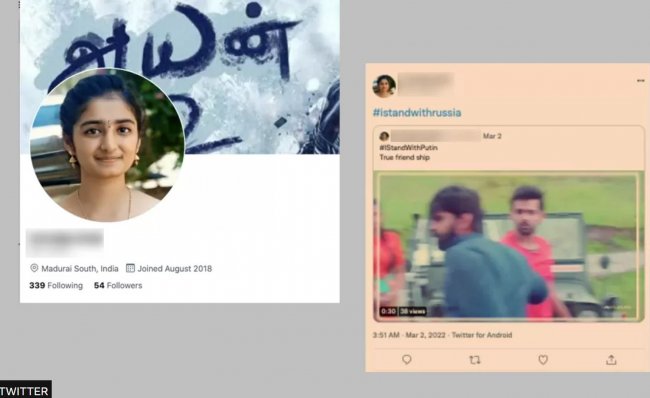 Некоторые аккаунты использовали в качестве аватарки фото индийских блогеров-инфлюэнсеров. Так, популярная индийская инстаблогер Er Yamini обнаружила свою фотографию на аватарке Twitter-аккаунта, который тиражировал хэштеги в поддержку Путина и России. «Я — с Путиным (#IStandWithPutin). True friendship», — гласил один из постов с видео двух обнимающихся мужчин, очевидно, символизирующих дружбу Индии и России.
