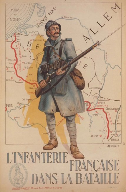 Плакат с французским солдатом на фоне линии Гинденбурга на карте (выделена красным)
