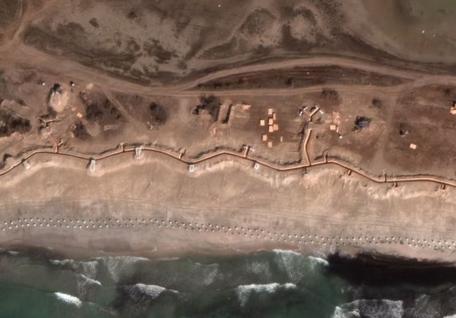 Оборонительные линии строятся вдоль всей «старой» российско-украинской границы и не только. Недавно воображение публики, пристально наблюдающей за войной, поразили спутниковые снимки оборонительных сооружений, которые россияне возводят на занятых территориях Украины. В частности, речь идет о непрерывном окопе длиной 70 километров от окраин Мелитополя до населенного пункта Мариновка в районе Приморска на берегу Азовского моря. Поражают своими масштабами (и не только масштабами) окопы, вырытые прямо на берегу Черного моря в Крыму, и линии бетонных заграждений внутри полуострова. Например, в поселке Витино траншеи и ряды противотанковых бетонных «пирамидок» (они же «зубы дракона») располагаются буквально на пляже. Такие же «пирамидки» установили в несколько рядов на Ак-Монайском перешейке, соединяющем Керченский полуостров с остальным Крымом.