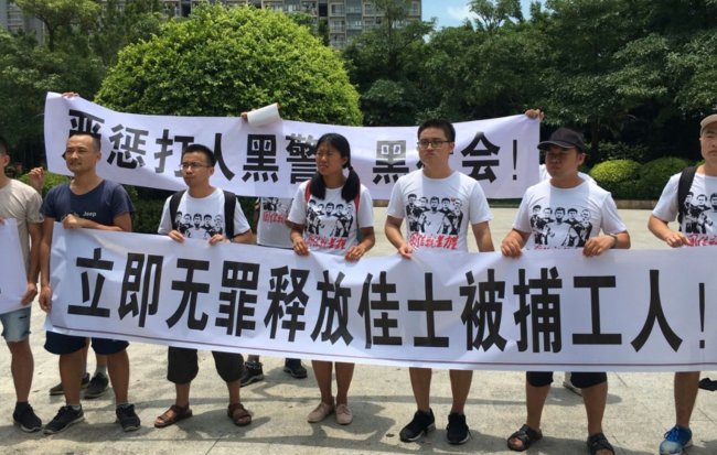 Демонстрация в поддержку рабочих Jasic Technology, Шэньчжэнь, 6 августа 2018 года