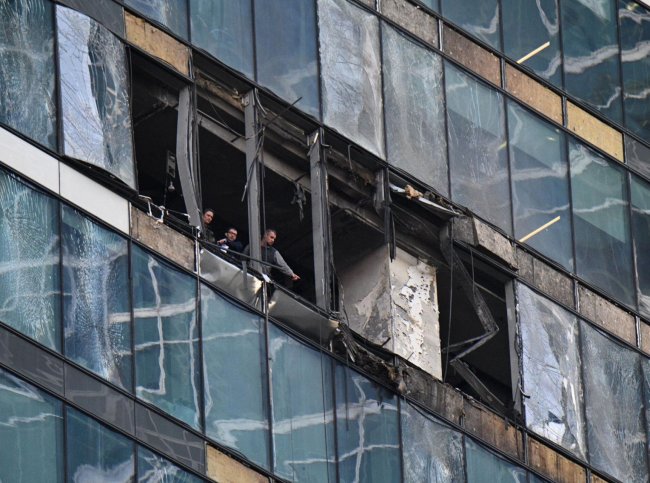 Последствия прилета дрона-камикадзе в башню «IQ-квартал» в Москва-Сити