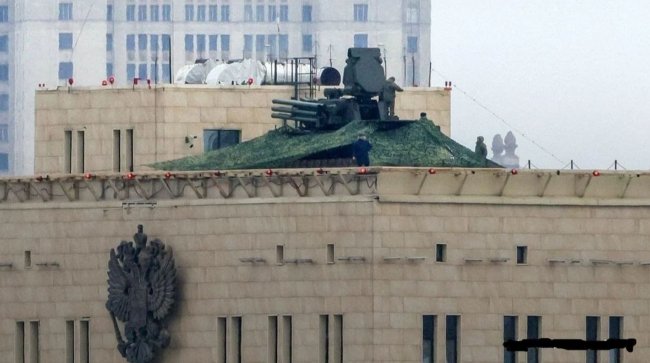 Зенитный ракетно-пушечный комплекс «Панцирь-С1» на крыше здания Минобороны