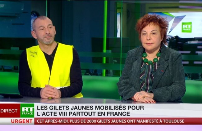 Приверженность RT протестам «желтых жилетов» привела к забавной ситуации. Один из протестующих, которого попросили дать комментарий в эфире RT France во время митинга, заявил: «нам нужен Путин во Франции», который сможет «просветить нашего президента [Макрона], этого клоуна» и поговорить с ним (что удивительно, видео пропало с сайта канала, но его скопировали другие аккаунты). Активистка по имени Селин объяснила, что слышала, будто Путин «давал хорошие обещания пенсионерам». Этот гротескный пример иллюстрирует контекст, в котором действует голос Кремля. Французы плохо осведомлены о ситуации в России (Владимир Путин действительно начал пенсионную реформу, но, учитывая повышение пенсионного возраста, она вряд ли положительно сказалась на пожилых людях). RT France приветствуют те, кто ожидает критики в адрес своего правительства, и эту задачу RT France отлично выполняет.