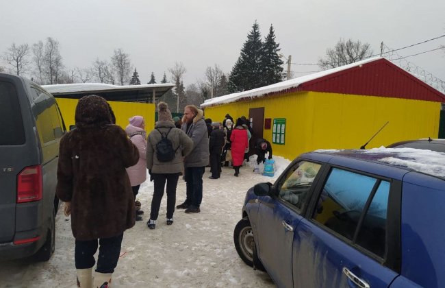 Подъездная дорога к спецприемнику заставлена машинами несмотря на знак эвакуации. Паркуемся перед старенькой ладой с наклейкой «На Берлин». Впереди - ярко-желтое здание пропускного пункта и большие ворота, время от времени они с грохотом открываются и пропускают автозаки, забитые людьми. В торце здания принимают передачи для арестованных, там собралась очередь - примерно 50 человек. Остальные греются в машинах. К заднему стеклу одной из машин скотчем приклеен лист с надписью «Здесь можно погреться». В стороне стоит покосившаяся туалетная кабинка, но заходить в нее невозможно, поэтому все предпочитают прогулку по лесу.
