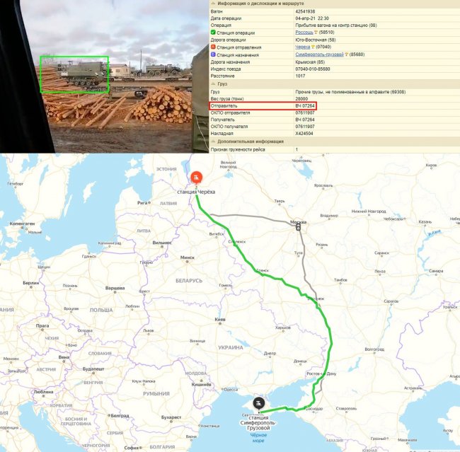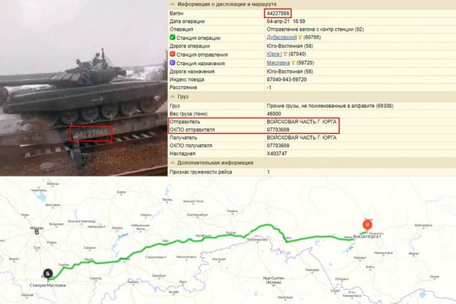 В последние дни мы и другие исследователи внимательно изучаем эти видео. Удалось достоверно установить, что к украинской границе перемещаются мотострелковые, артиллерийские, десантные, а также, по всей вероятности, танковые части. Известные пункты назначения — Крым и окрестности Воронежа. Это удалось узнать с помощью сервиса gdevagon, который позволяет отслеживать маршруты железнодорожных вагонов и платформ по уникальным номерам, которые заметны на видео. Среди перебрасываемых частей присутствуют уже знакомые по войне в Украине — например, 76-я гвардейская десантно-штурмовая дивизия, бойцы которой, известные как «псковские десантники», несли потери на Донбассе в 2014 году.